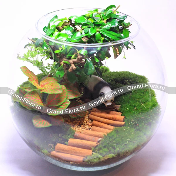 Стандартный: флорариум, бонсай, фиттония, мох, фигурка панды.